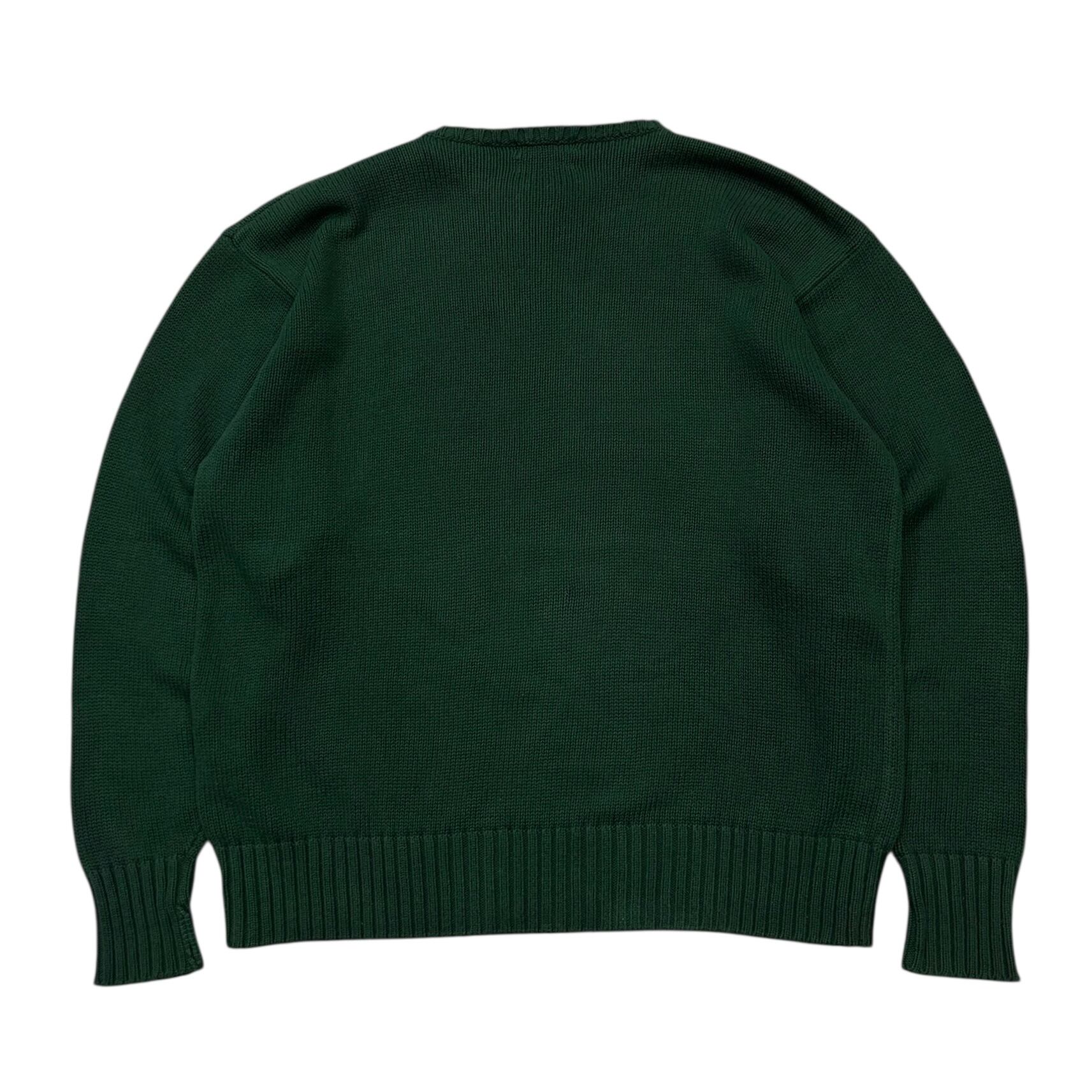 【90's Polo Ralph Lauren コットンニット/セーター 刺繍ロゴ メンズXL ダークグリーン】
