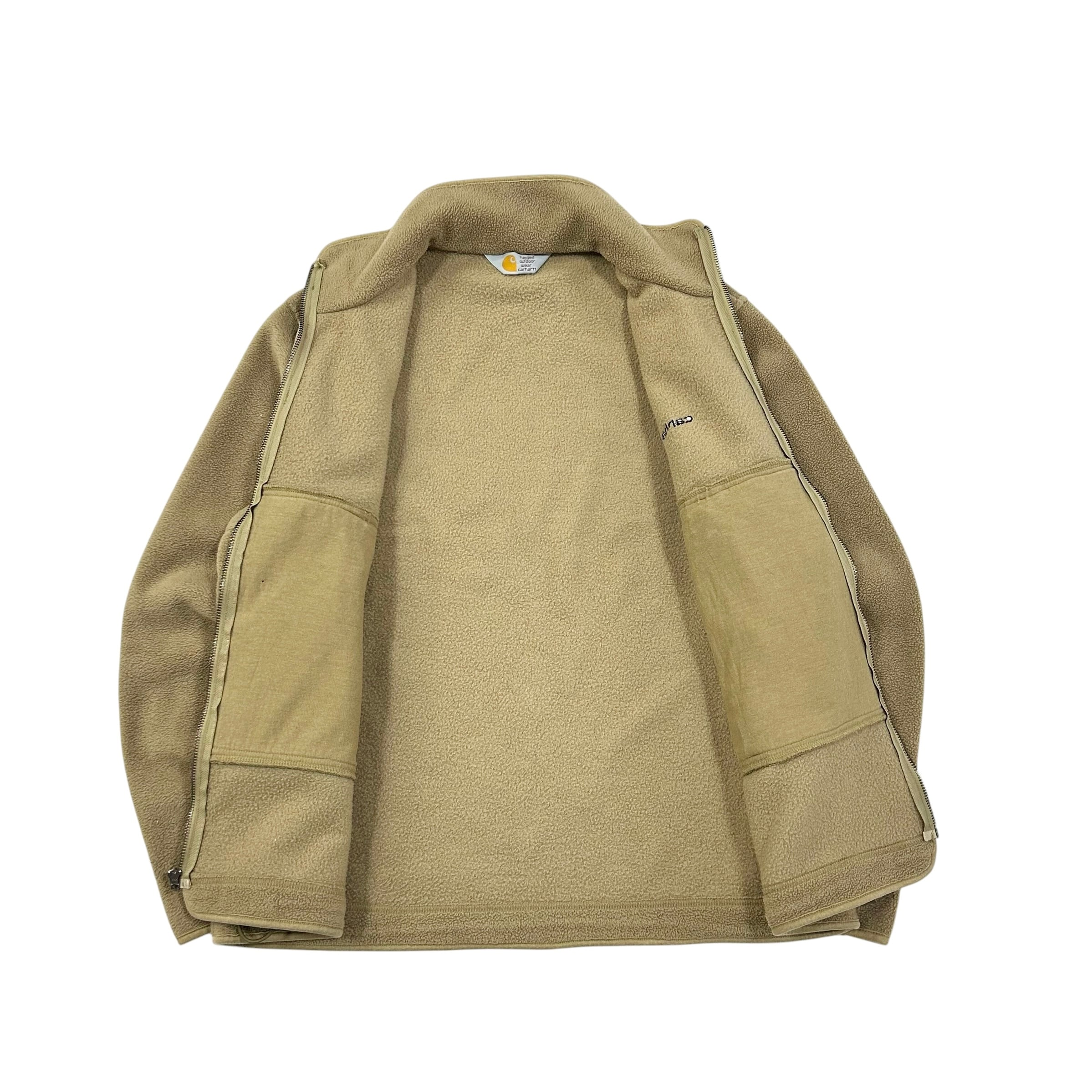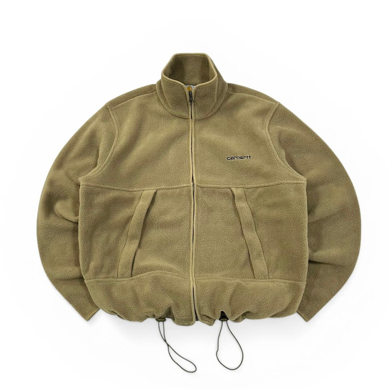 00s Carhartt フリース ジップアップジャケット ドローコード付き ベージュ系